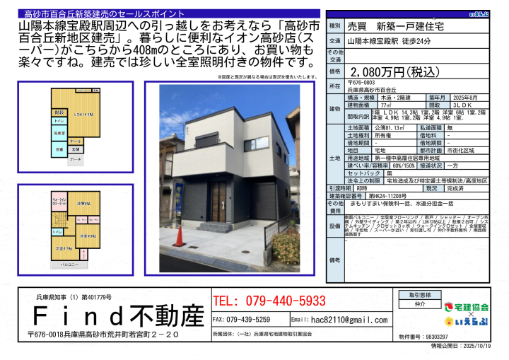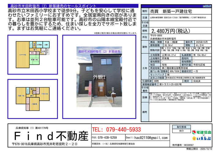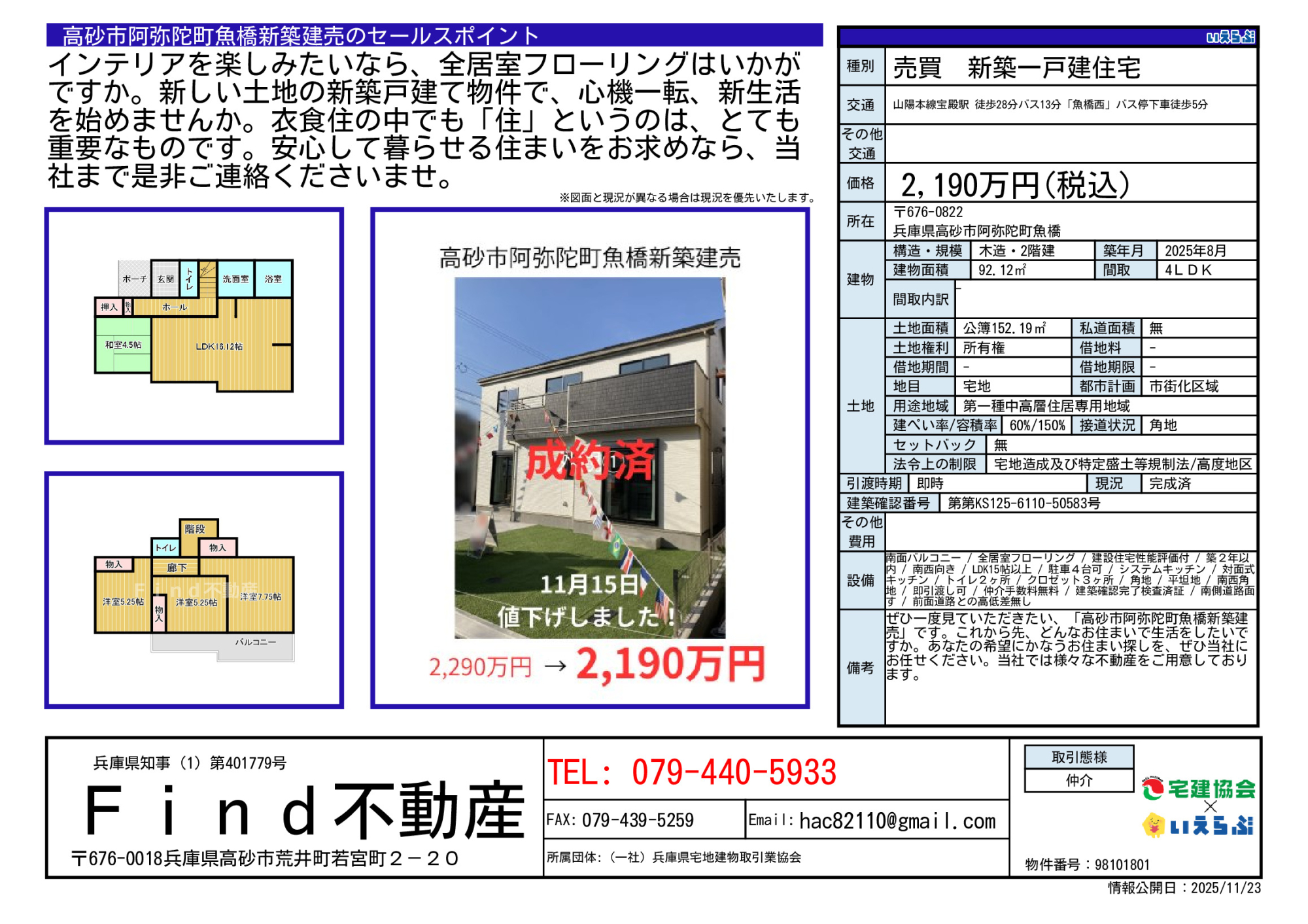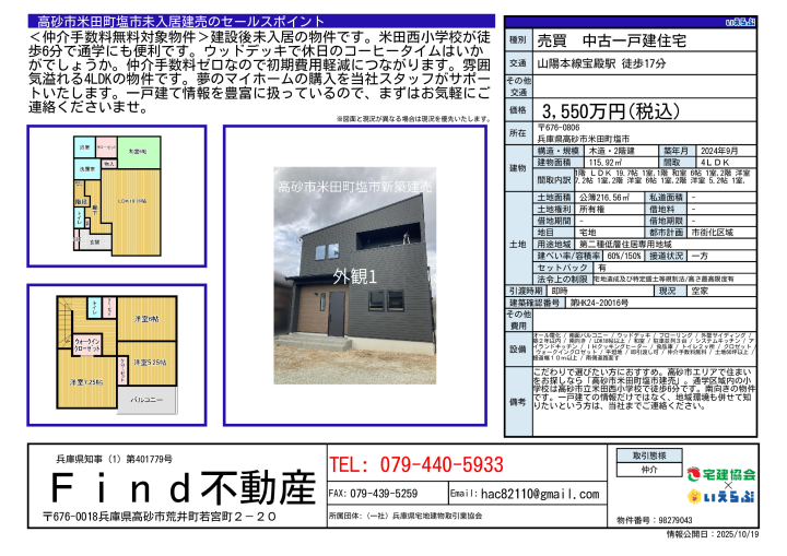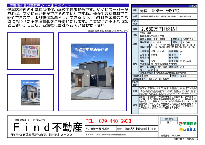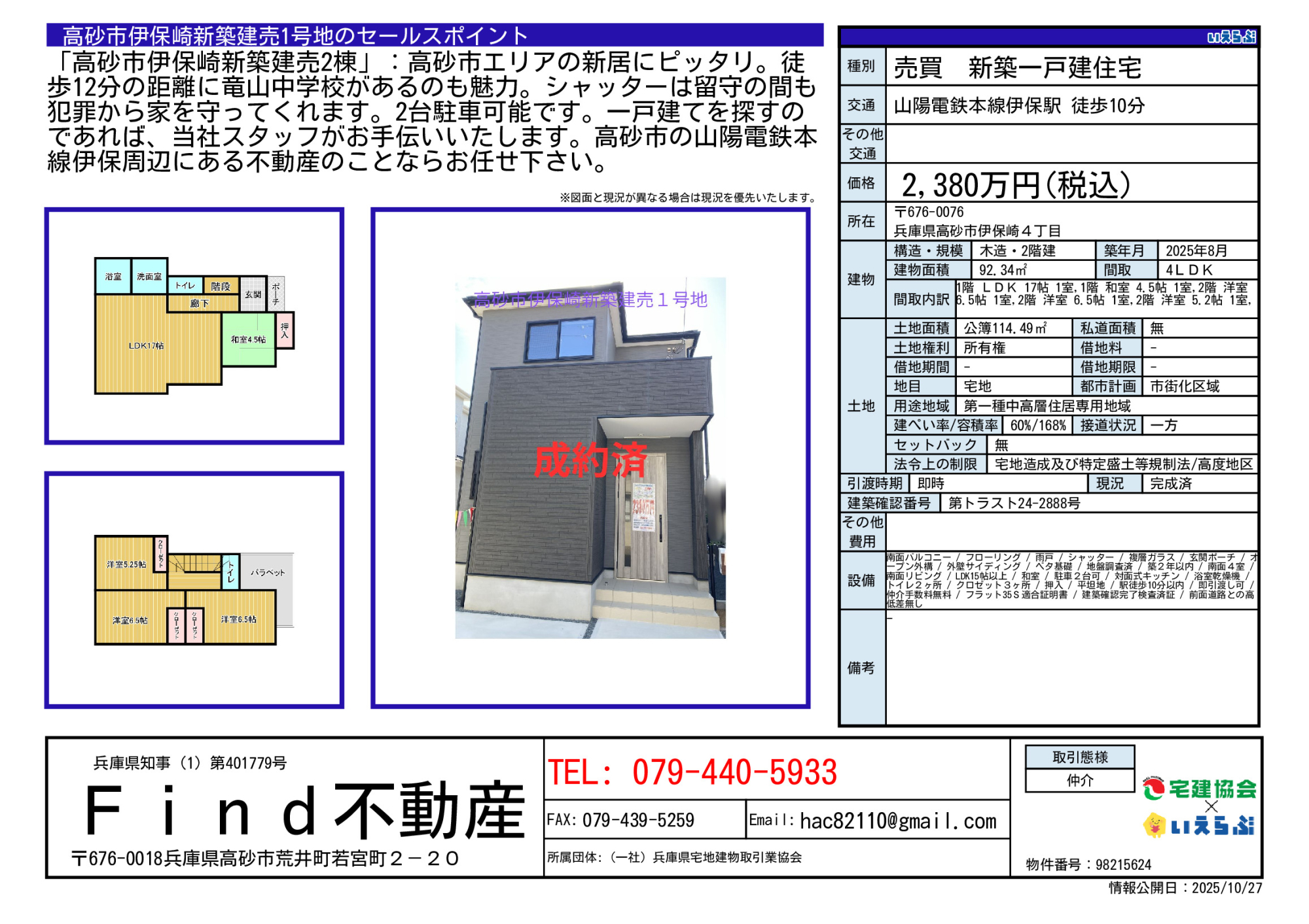 この物件は成約済です。類似物件を仲介手数料無料ご紹介できますので、電話079-440-5933もしくはホームページのお問い合わせにてお問合せください。