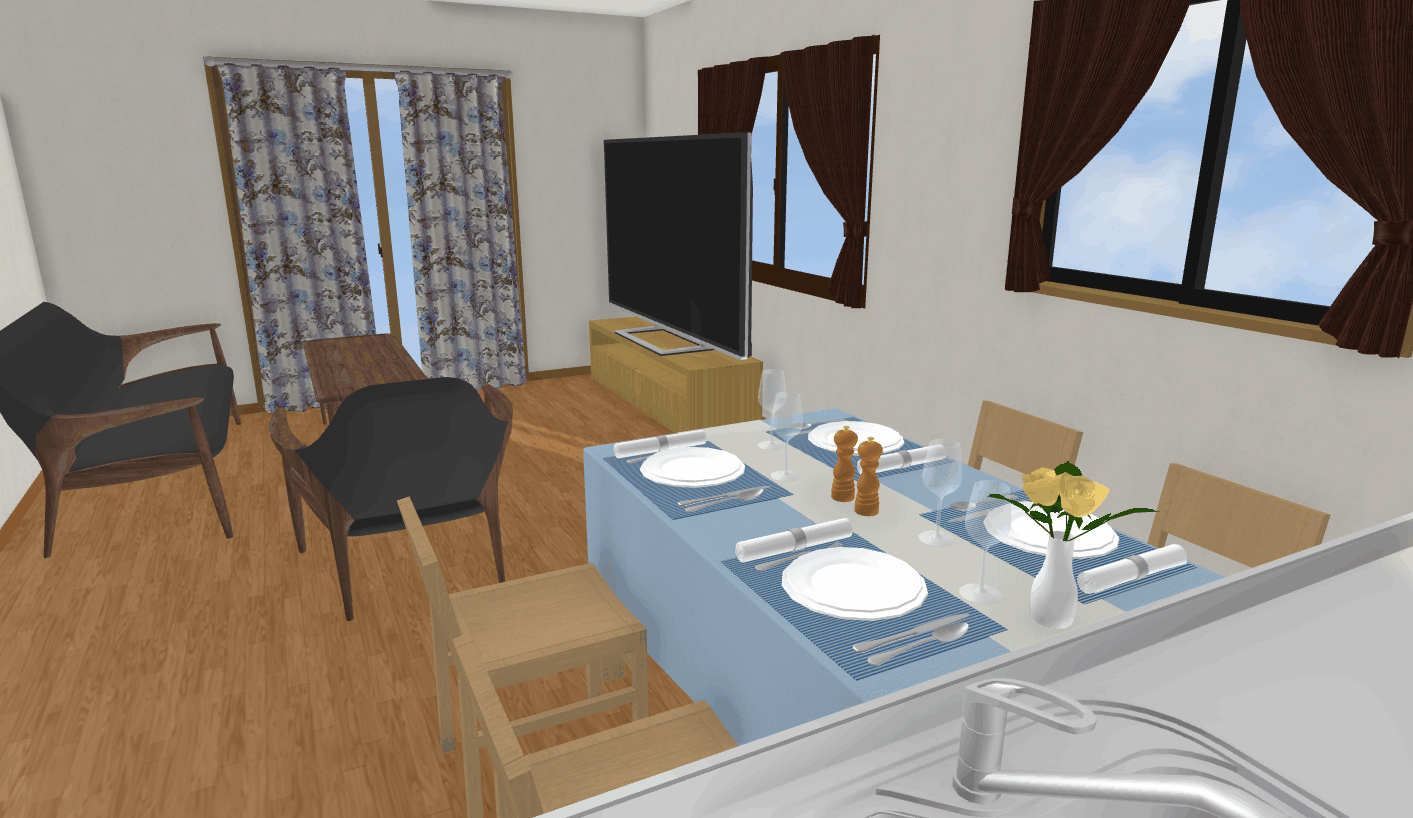LDKイメージです。平面図から作成しているイメージ図なので、完成物件と異なっていることがあります。家具・家電・カーテン等は付属しておりません。