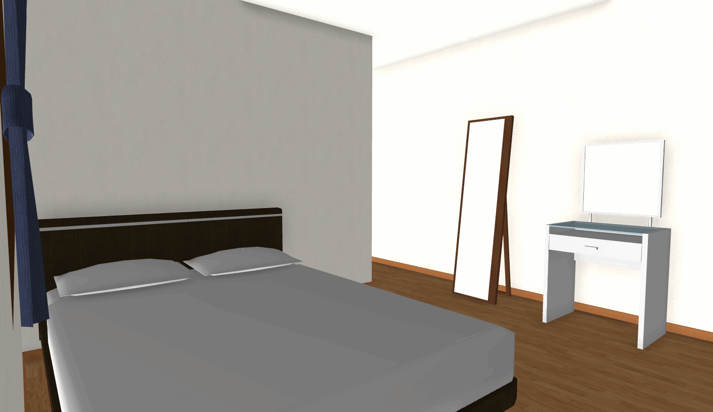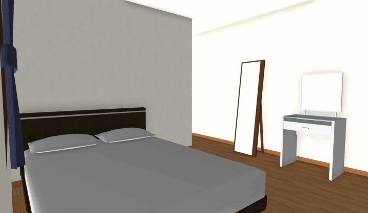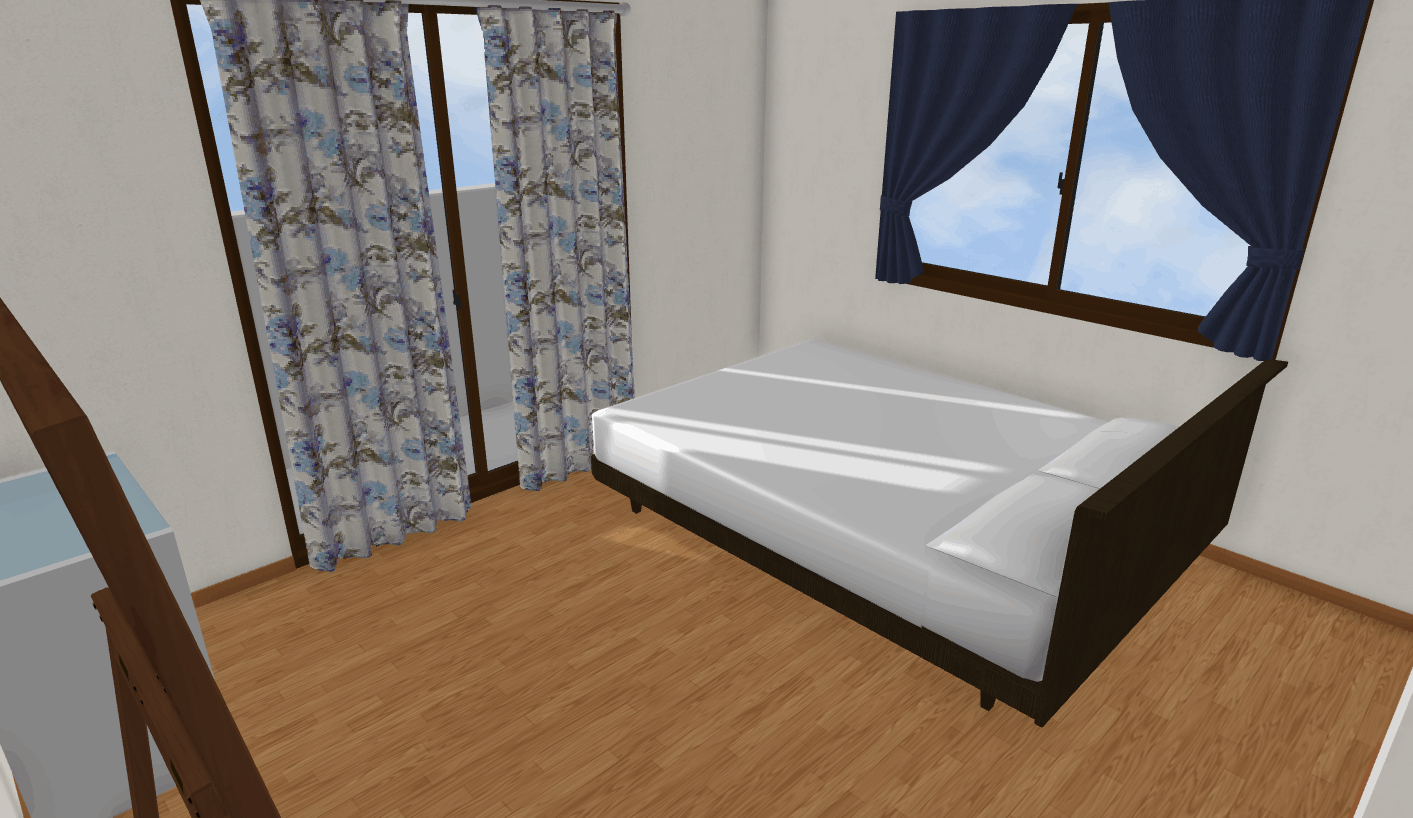 主寝室イメージです。平面図から作成しているイメージ図なので、完成物件と異なっていることがあります。家具・家電・カーテン等は付属しておりません。