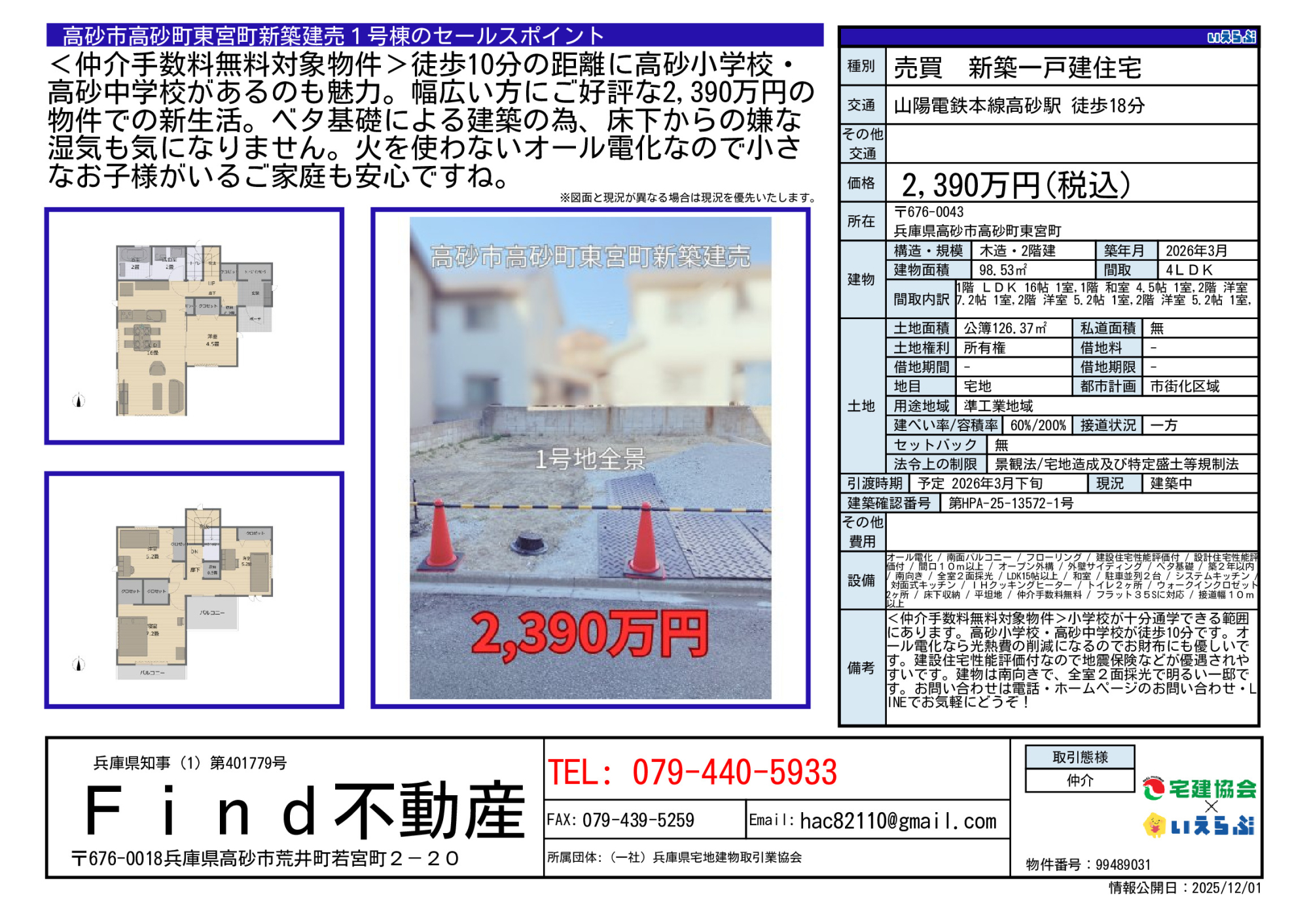 高砂神社近くのなかなか建売が出ない地区で新築建売建築中!オール電化住宅は昨今の酷暑の中の料理も熱気が少なく快適ですよ!高砂海浜公園の花火大会はバルコニーが特等席です。万灯祭会場も近いです。お問い合わせはお気軽にどうぞ!